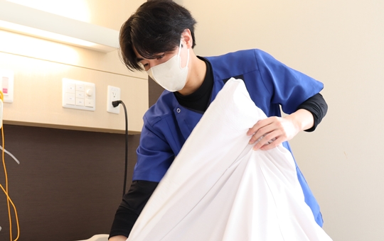 患者さんの身の回りの支援や環境整備の仕事をしていて、シーツ交換やおむつ介助の時に患者さんから「ありがとう」と声をかけて頂くとすごくやりがいを感じます。
